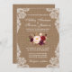 Rústico Casamento Burlap Lace com Watercolor Burgundy Marsala Convite Floral