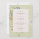 Anuncie seu casamento com um toque de elegância rústica. Nosso convite de casamento cativante apresenta um arranjo vibrante de flores silvestres e samambaias, meticulosamente desenhados à mão e lembrando tesouros botânicos pressionados. Cores ricas como bronzeado, amarelo, creme, azul e verde-sábio se destacam lindamente contra uma imagem de fundo verde-claro-suave. Os detalhes do seu casamento são mostrados em uma caixa de texto de creme nítida, garantindo clareza e elegância. Este design captivador captura a essência de um campo de flores silvestres, oferecendo uma maneira única e memorável de celebrar sua história de amor. Criado pela imprensa simplesmente de farmácia.