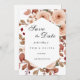 Um floral romântico Salve o cartão de encontro para enviar para a família e amigos quando planejar o casamento dos seus sonhos. Apresenta flores silvestres de aquarelas em tons neutros de bege, pêssego, rosa e terracota misturados com verde rústico para lindos resultados. Você pode até mesmo personalizar o modelo de texto com seus detalhes e carregar sua própria foto na parte traseira do cartão.