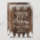 Rustic Winter 100th Convite de aniversário. Esta design apresenta bonito pintura, cor d'água, Árvores Neves em um fundo de madeira rústica acentuado. Clique no botão personalizar para obter mais flexibilidade na modificação do texto ou na movimentação dos gráficos. Entre em contato conosco se você precisar deste design aplicado a um produto específico para criar seu próprio item de correspondência exclusivo.
