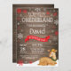 Rustic Winter Onederland Deer primeiro aniversario Invitation. Floco de neve vermelho e branco. Primeiro Aniversário. Menino ou Garota 1rua Convidam. Fundo Rustic Wood. Preto & Branco. Para mais personalização, clique no botão "Personalizar" e use nossa ferramenta de design para modificar este modelo.