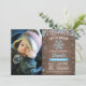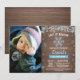 Convite de aniversário Rustic Winter Snowflake Blue and Silver Boy com fotografia personalizada. Aniversário. Floco de neve brilhante azul e prateado. Feriado de Natal de inverno. Fundo Rustic Wood. Campo de Vintage Retro Barn segundo 1rua 5 3 4º 6 7 8º 9º 9º 11 10º 12 de 13 14 15, qualquer idade. Para mais personalização, clique no botão "Personalizar" e use nossa ferramenta de design para modificar este modelo.