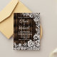 Rustic Wood and White Lace Floral Wedding Invitation .