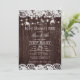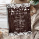 Rustic country couple baby shower backyard barbecue invitation on dark brown barn wood featuring bold typography, white flowers, lace borders, and strings of twinkle lights. +++++++++++++++ The invitation is suitable for summer autumn fall outdoor garden backyard rustic country bbq new baby shower, or sprinkle parties.