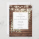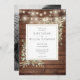 Apresentando luzes brilhantes de cordas e verde-aquarela em um fundo de madeira rústica, este convite para casamento de na moda pode ser personalizado com sua foto e informações especiais sobre o dia do casamento. Projetado por Thisnotme©