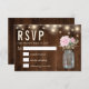Convites Rustic Wood Pink Peony Floral Mason | Placa RSVP
