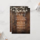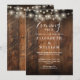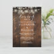 This rustic wedding evening party invitation, featuring pretty string lights on a barn wood background, can be personalized with your information in stylish typography. Designed by Thisisnotme©