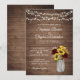 Convites Rustic Wood Sunflower Burgundy Mason Jar Wedding