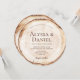 Rustic woodland wedding invitation featuring a round wood slice design with natural tree ring background texture (*background is printed on round paper). Perfect for forest, outdoor, barn, and country weddings. This flat round invitation has a rustic wood grain look and can be fully personalized with your names, date, and wedding details.
