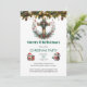 Convide amigos e família para uma celebração de Natal com significado com este convite encantador. Apresentando uma cruz de madeira rústica cercada por uma coroa de galhos de pínus, bagas e pinecones, esta design traz uma sensação quente e natural para a temporada de festas. Dois ouriços em Papai Noel trazem um charme aconchegante, um segurando uma xícara de chocolate quente enquanto os outros carregares um presente. Personalize os detalhes de um convite exclusivo e inspirado na fé perfeito para as reuniões de feriados.