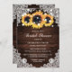 Convites Rústica Chic Wood Lace Chá de panela de girassol
