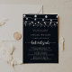 Este 'rustic string' ilumina o convite do morcego mitzvah da caligrafia é perfeito para um morcego mitzvah moderno. O design apresenta belas luzes de cordas pintadas manualmente em um fundo azul escuro.