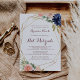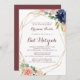 Este ouro rústico deixa o convite do morcego da caligrafia mitzvah perfeito para um morcego moderno mitzvah. O design apresenta cor d'água, púrpura, marinho, pincel, burgundy, flores de marinho, folhas verdes e douradas que adornam um quadro geométrico elegante.