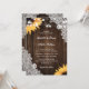 Este elegante convite de casamento de girassol com girassóis e rendas rústicas em um fundo de madeira de celeiro é perfeito para convidar seus hóspedes para a sua festa de casamento de verão no campo/celeiro rústico inspirado pelos girassóis. Fácil de personalizar a modelo. Design totalmente personalizável.