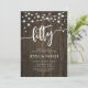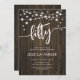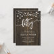 50º Convite de aniversário. Design russo com padrão de madeira marrom-escura. Cartão de convite clássico com luzes de fada e fonte de script. Perfeito para uma comemoração de na moda 50 dias. Personalize com seus próprios detalhes. Pode ser personalizado para qualquer idade! Impressos convites Zazzle ou modelo de impressão digital instantânea para download.