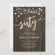 60º Convite de aniversário. Design russo com padrão de madeira marrom-escura. Cartão de convite clássico com luzes de fada e fonte de script. Perfeito para uma comemoração de na moda sexagésimo dia. Personalize com seus próprios detalhes. Pode ser personalizado para qualquer idade! Impressos convites Zazzle ou modelo de impressão digital instantânea para download.