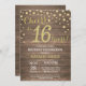 16.º Aniversário com Madeira Rústica e Dourado Fundo de Diamante Glitter. Retro de Vintagem do País. Dourada Confetti. Aniversário de criança. Menina ou Menina Adolescente Dama de Aniversário. Para mais personalização, clique no botão "Personalizar" e use nossa ferramenta de design para modificar este modelo.
