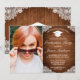 Convite para fotos de graduação. Estilo russo com planícies de madeira marrom e decor de rendas brancas. Há mais itens disponíveis neste estilo na nossa loja. Você pode editar a design, alterar a cor do plano de fundo, fontes e adicionar texto extra clicando em "Personalizar este modelo" e, em seguida, no link "Clique para personalizar mais".