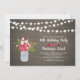 Celebre seu dia especial com este convite de na moda. Este design apresenta luzes de cordas, jarro de pedras e buquê de flores em um fundo de madeira rústico. Você pode personalizar todo o texto e o monograma em um pote de mason. Perfeito para um evento outono/outono.