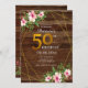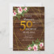 Rustic Wood Floral 50º Aniversário convite para celebrar o aniversário do marco. As elegantes flores cor-de-água cor-de-rosa e a tipografia dourada num fundo de madeira acrescentam um olhar rústico moderno ao convite de aniversário. Personalizar com detalhes da festa.