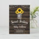 Um doce e giro design de 16 convite de aniversário. Perfeito para um país temido por dezesseis festas de aniversário. Este design apresenta girassóis em um pote de pedreiro, pendurado de luzes de cordas em um fundo de madeira de celeiro.