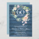 Com uma delicada guirlanda de rosas e folhagens florais em aquarela sobre um fundo de painéis de madeira rústica azul, este convite elegante para o 60º / 75º aniversário de casamento pode ser personalizado com os detalhes do seu aniversário de diamante ou platina. O verso apresenta uma guirlanda floral correspondente emoldurando as datas do seu aniversário em texto branco elegante sobre um fundo azul diamante. Desenhado por Thisisnotme©