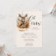Veado de aquarela russa com seus filhotes gêmeos deitados na relva de outono, para este Chá de fraldas Twins Convite - rosquinha beige original - A caligrafia Chic diz: ! - Um chá de fraldas de boho Style em boho para a mãe ter gêmeos.