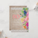 Belo convite de aniversário botânico cor-de-rosa, azul, laranja e amarelo, floral e verde, para as mulheres, em um fundo rochoso e branco, e um tipo de letra cursiva fofo. A parte traseira desta placa é um fundo correspondente de madeira. Entre em contato conosco para obter ajuda com a personalização ou para solicitar produtos correspondentes.
