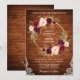 Rústica Wood Burgundy Floral Wreath Lace Dourado Convite