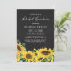 Convide os convidados para o seu evento com este convite para o almoço. Apresenta ilustrações em aquarela de girassóis e folhas de eucalipto sobre fundo chalkboar falso. Este convite para girassol é perfeito para o verão e para o almoço de noiva. Personalize adicionando nomes, data, hora, local e outros detalhes do evento. Você também pode mudar a imagem traseira para uma foto ou qualquer outra imagem.