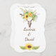 Rústica D'Água Cria Girassóis sobre Convites de Casamento de Vaca Longa. Um belo buquê de girassóis pintados à mão sobre um crânio rústico de vaca de corno longo. Chic e rústico ao mesmo tempo!