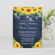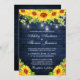Luzes de Corda de Madeira Azul Rústica com Mason Jars Watercolor Floral de Girassol e Greenerescência Convite para Casamento