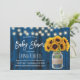 Convites Rústico girassol Mason Jar Blue Wood Chá de fralda
