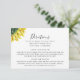 Girassol de cor de água russa, direção do casamento. Cartão de inserção de modelo. A placa apresenta o caule de girassol de cor d'água do solteiro no canto com cobertura azul marinho sólido.