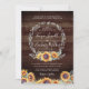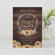 Um conjunto único de campos rústicos, com tema floral, de convites adaptados especificamente ao seu futuro casamento. Estes convites apresentam um excesso de girassol. Por baixo deste é um lugar para os seus detalhes únicos de casamento e os nomes da noiva e noiva em branco. No verso há um pano de fundo de madeira semelhante para complementar a frente. Este item é um solteiro do Rústico Sangue de Girassol | Coleção de casamentos no campo. Visite a coleção ou o arquivo de selva de cores para ver mais itens correspondentes. Todos os elementos deste item são desbloqueados e personalizáveis usando a função de personalização. Aproveite ser criativo com isso.