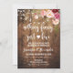 Modelo de recepção de casamento rústico lê "Nada sofisticado, apenas amor" e apresenta fundo de madeira rústica, flores em aquarela e luzes de corda. Para acessar ferramentas avançadas de edição, vá para “Personalizar” e clique no link "clique para personalizar ainda mais".