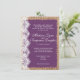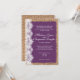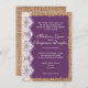 Estes convites de casamento de países rústicos apresentam uma braçadeira e design de renda impressos com um fundo roxo. Estas são excelentes para qualquer país ou casamento ruidoso. Apenas adicione seu próprio convite de casamento a este modelo. Estas são excelentes para qualquer um com cores de casamento roxas procurando um estilo de convite para casamentos vintage.