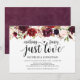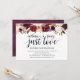 Este cartão de convite temático floral borgonha rústico é perfeito para a celebração da recepção / festa do seu casamento. Adicione seus detalhes em fonte / letra preta correspondente.