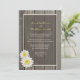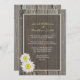 Convites da recepção somente, para aquelas que terão uma cerimónia privada, ou elopement. Os convites rústicos do casamento com uma margarida branca projetam em um fundo envelhecido da madeira do celeiro. Obtenha os cartões de resposta rústicos de harmonização do casamento.