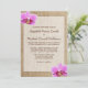 Um convite temático do casamento do país que caracteriza a serapilheira e a orquídea cor-de-rosa floresce. Personalize facilmente com seus detalhes do evento! O DESIGN É GRÁFICOS IMPRESSOS PLANO -- SERAPILHEIRA NAO REAL.