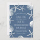 Convites do casamento do dólar da estrela do mar & de areia do tema da praia dos azuis marinhos.