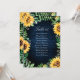 Números elegantes e modernos de mesas de casamento rusticais com nomes de hóspedes apresentam flores amarelas brilhantes de girassol e o hálito de bebê/girofila floral com folhas sobre fundo de madeira azul-marinho. Por favor, encontre mais designs e variações na minha loja de "blisswedingpaperie". E fique à vontade para me contactar para mais personalizações ou itens correspondentes.
