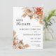 Prepare-se para celebrar a estação do amor! Anuncie seu grande dia em estilo com nosso elegante "Casamento Floral Rusty Terracotta Salve a Data Convite!" Ordene o seu hoje, e deixe a contagem regressar ao seu maravilhoso casamento começar!