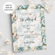 Sage de flores verdes e brancas como fundo. Personalize e adicione seus nomes e detalhes.