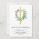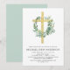Orquestra Verde ou Menina Eucalipto e Dourada Cruz de Madeira e Verde Botânico Molerado Aquarela Cristã Convocações para Batismo Religioso.