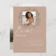 Folhas de eucalipto eterno contra fundo de terracota formam uma coroa esperta ao redor daquela foto especial da futura noiva, criando uma aura elegante e romântica. Paira bem com a maior parte das estórias de casamento com temas eucaliptos. Personalize facilmente as suas informações pessoais e fotografias na frente e atrás do cartão.