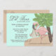 Lil' Toes para tocar a areia e aquecer nossos corações para sempre. Convite de chá de fraldas de verão único com um flamingo em vez de uma cegonha. O bebê está pronto para o verão com chinelos ligados!