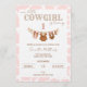 The back of the invitation showcases a stylish pink cowhide pattern, giving the design a trendy Western flair your guests will love. Perfect for cowgirl-themed parties, farm birthday themes, or rustic first birthday celebrations.