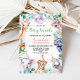 Safari Colorido Divertido Chamando Animais de Festa Aniversário Este convite de aniversário colorido safari temático pode ser usado para qualquer idade e apresenta vários animais da selva, chapéus de festas, bola de disco, folhagem e pontos coloridos.