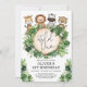 Celebre o primeiro aniversário do seu menino com este convite de festa temático de safari caprichoso. O design apresenta um grupo de adoráveis animais da selva e exuberante vegetação tropical em aquarela